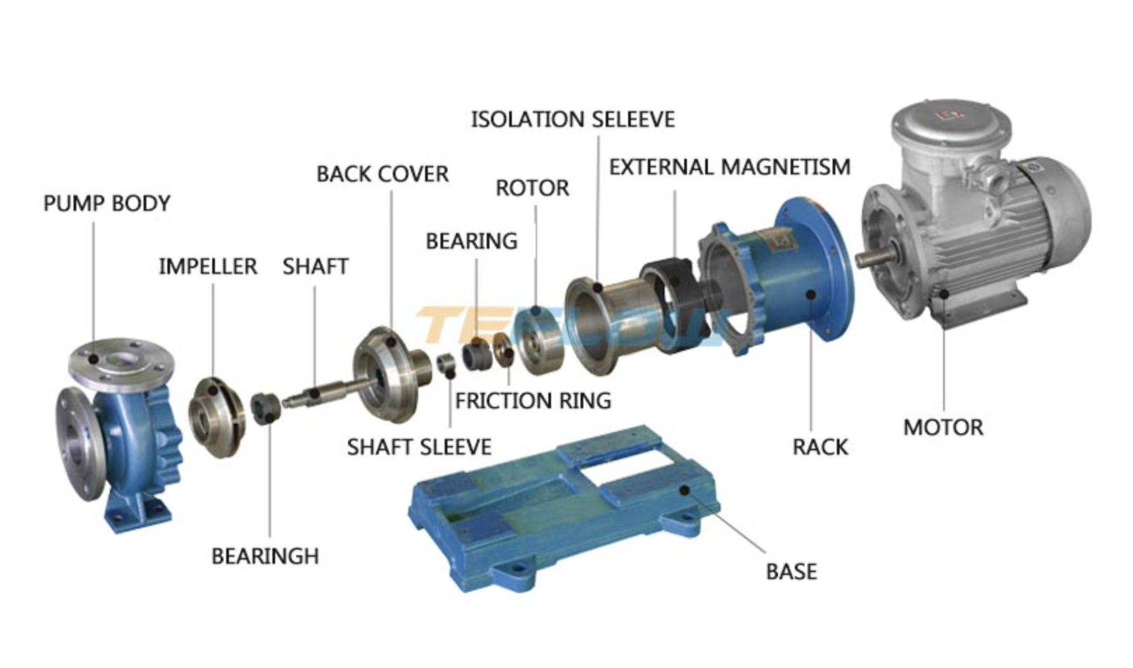 La Bomba Magnética de Acero Inoxidable CQB-P está diseñada para el transporte seguro y eficiente de líquidos corrosivos, tóxicos, inflamables o de alta pureza. Gracias a su sistema de transmisión magnética sin sello, esta bomba garantiza cero fugas, una operación totalmente hermética y un nivel de seguridad superior frente a bombas centrífugas tradicionales.