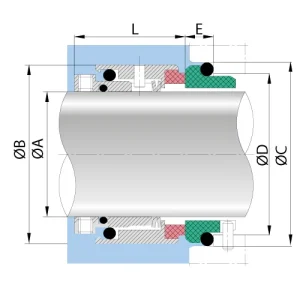 Sello mecánico balanceado independiente del sentido de rotación, multiresorte, de corta longitud de operación para servicios exigentes de sellado de fluidos de gran desempeño en solventes, químicos y lubricantes. Cumplimiento de normas DIN 24960