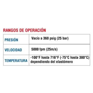 TEMPERATURA-100°F hasta 716°F (-75°C hasta 380°C) dependiendo del elastómero