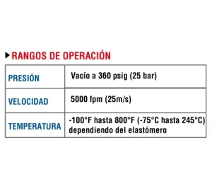 TEMPERATURA:  -100°F hasta 800°F (-75°C hasta 245°C) dependiendo del elastómero