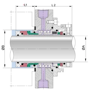 Sello doble balanceado con resorte robusto aislado del producto para trabajo pesado en productos abrasivos y viscosos.