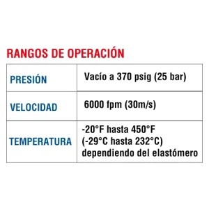 TEMPERATURA:  -20°F up to 450°F (-29°C up to 232°C) dependiendo del elastómero
