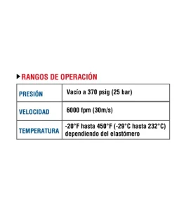 TEMPERATURA: -20°F hasta 450°F (-29°C hasta 232°C) dependiendo del elastómero