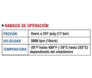TEMPERATURA: -20°F hasta 450°F (-29°C hasta 232°C) dependiendo del elastómero