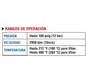TEMPERATURAHasta 212 °F (100 °C) para Viton